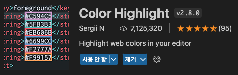 컬러를 넣은 부분에 지정한 색으로 하이라이트가 쳐져 구분하기 편하다! 이런식으로 나옴
