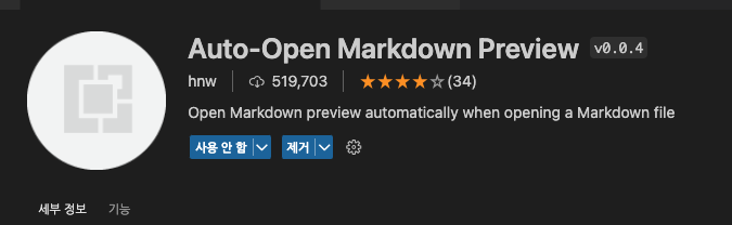 위에 Live Preview랑 비슷한 Auto-Ope Markdown Preview