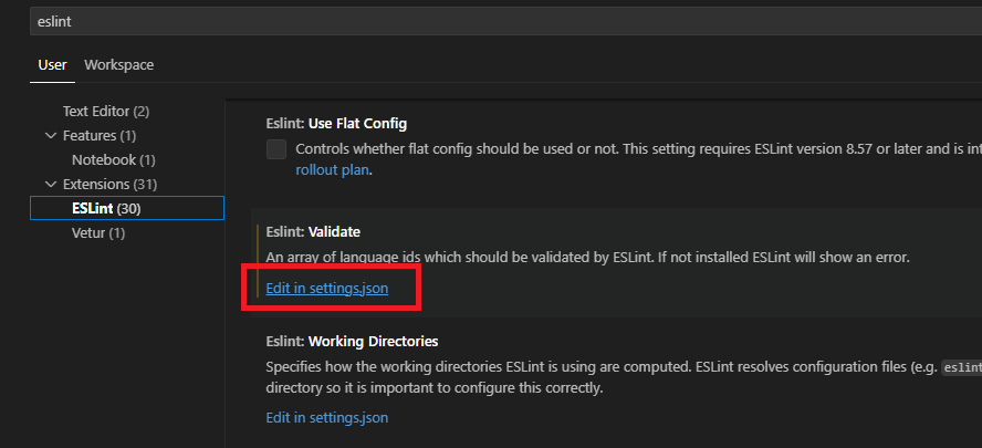 "eslint.workingDirectories": [