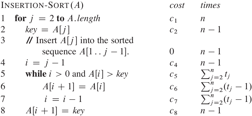T(n)T(n)T(n) = the running time of INSERTION-SORT on an input of nnn values
