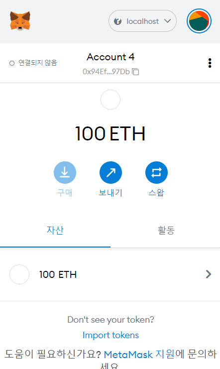 그럼 다음과 같이 100ETH가 들어가있을 것이다.