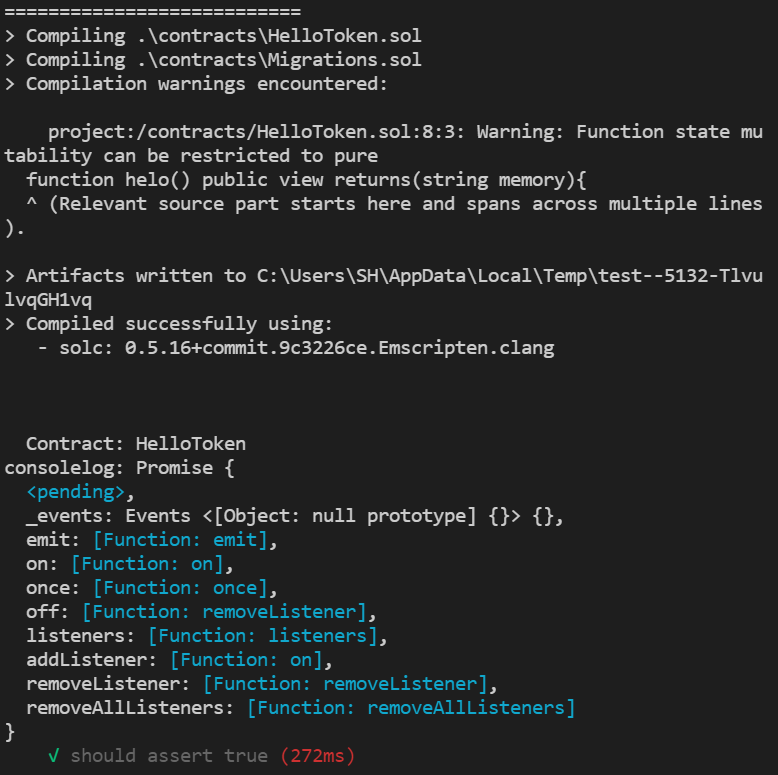의 내용과 같다. 먼저 "should assert true"를 콘솔에 찍고나서 콜백함수를 실행시키는 것이다. 저번 시간에 코드가 프로미스 객체를 반환함을 알 수 있었다. 그래서 비동기 함수인 async를 써준다.
