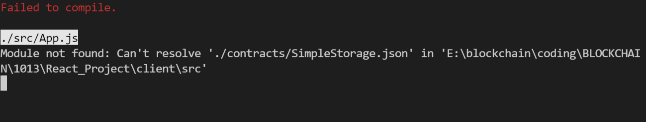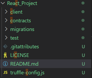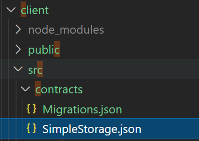 React와 연관이 없을 때에는 build폴더 안에 생성이 되었지만 이제는 컴파일한 결과물이 src/contracts 폴더 안에 생겨난다.
