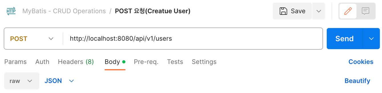 - POST 요청 URL 포트번호를 8000 → 8080으로 수정한다.