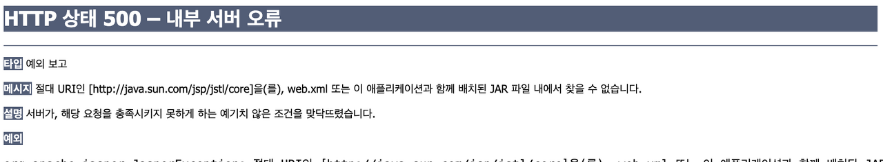 jstl.jar 파일과 jsp-api.jar 파일을 Tomcat/lib 폴더에 저장해주면 된다.