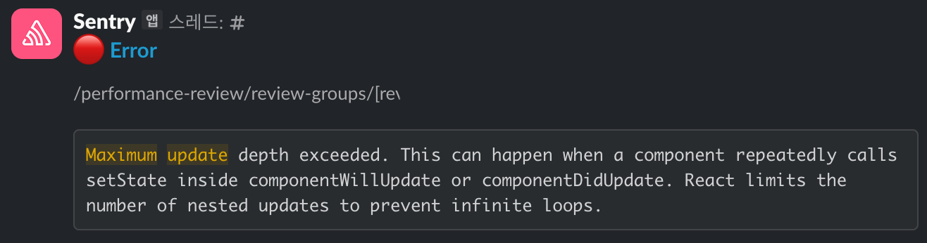 "이제 사용만 하면 되겠다!"라고 생각한 것도 잠시, Sentry 알림이 울리기 시작했어요. 몇몇 페이지에서 무한 리렌더링이 발생하고 있었죠. 🚨