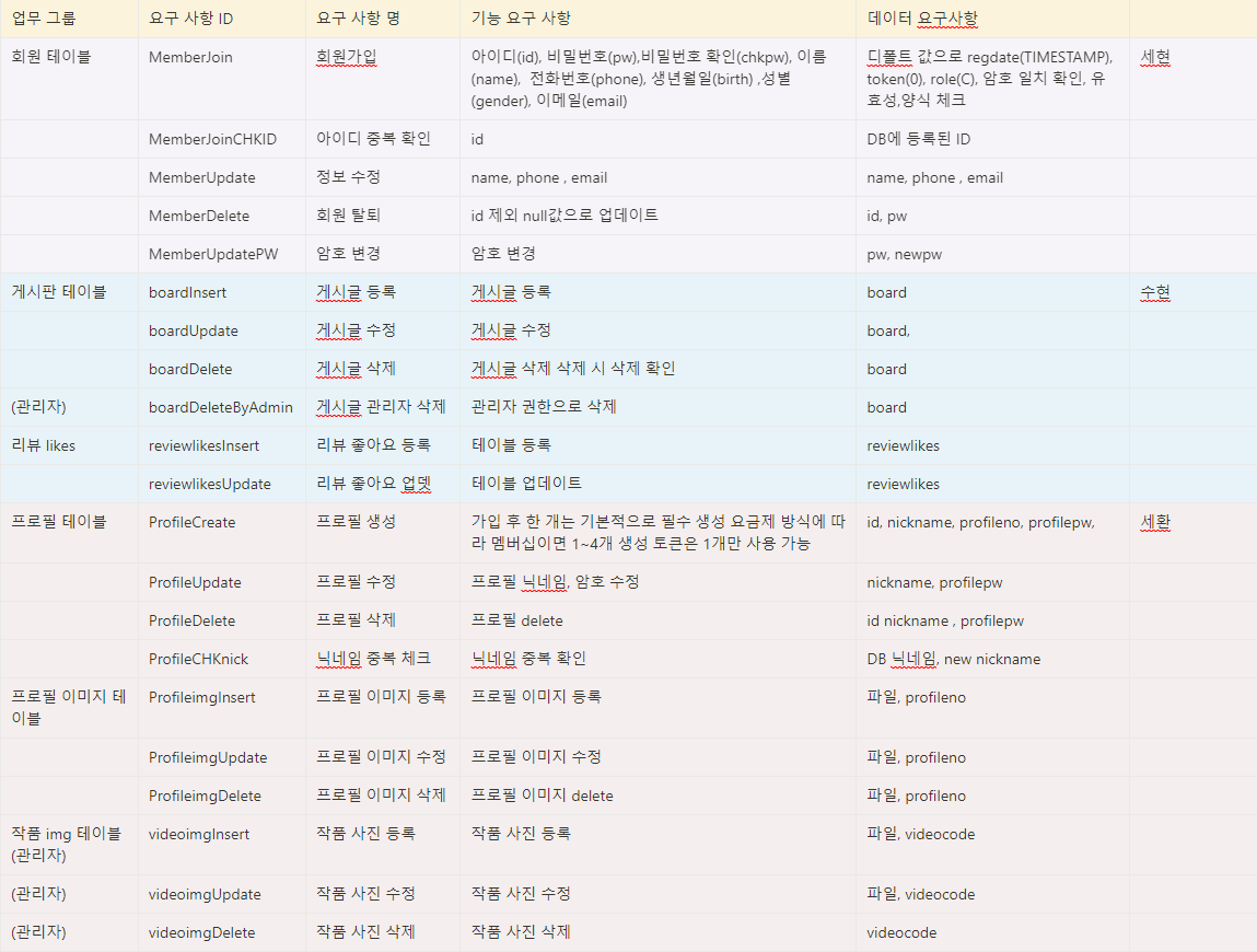 나는 프로필 테이블, 프로필 이미지 테이블, 작품 이미지 관리 기능을 맡았다.