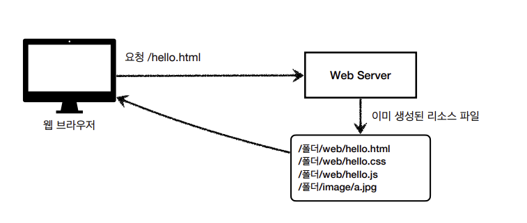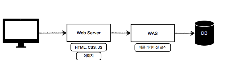 웹 서버는 정적 리소스 (파일), WAS 는 애플리케이션 로직이다.