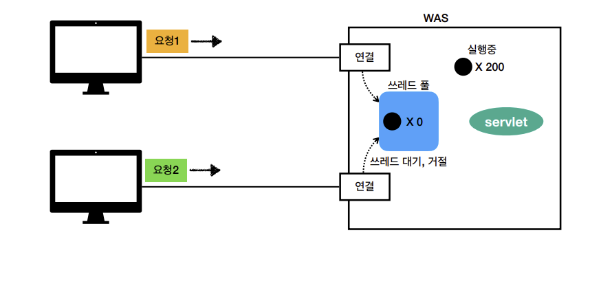 최대 쓰레드가 모두 사용중이라면, 기다리는 요청을 거절하거나 특정 숫자만큼만 대기하도록 설정할 수 있다.
