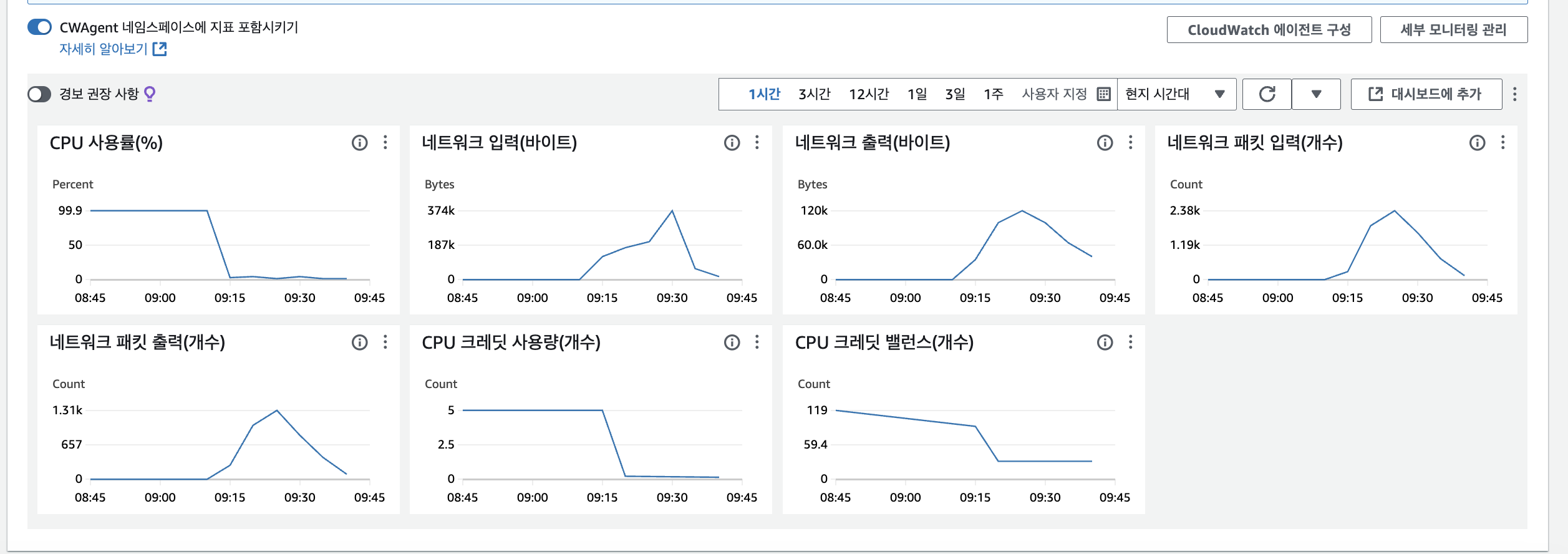 저는 AWS EC2 인스턴스의 문제라 생각이 되었고, AWS EC2 인스턴스를 모니터링을 해보았습니다. 그런데!!!