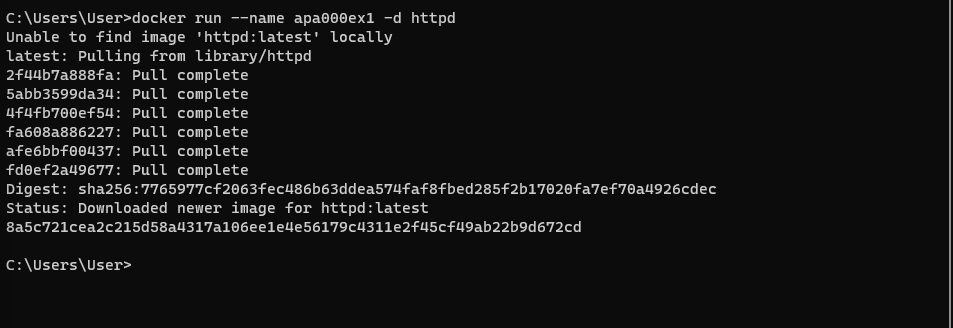 | --name apa000ex1 | apa000ex1이라는 이름으로 컨테이너를 생성 |