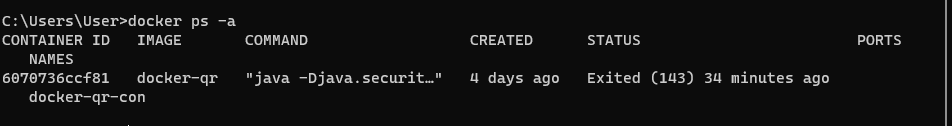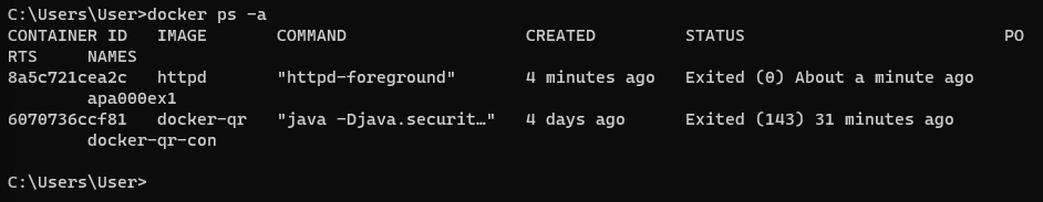 apa000ex1 과 예전에 만든 docker-qr-con 두개의 컨테이너가 있습니다.