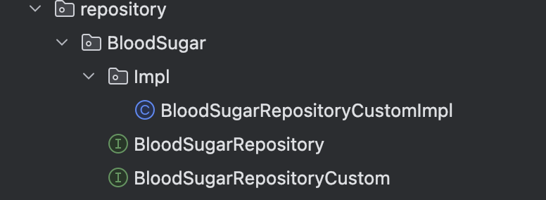 저는 QueryDsl를 사용하기 위해 혈당 리포지토리를 분리했습니다.