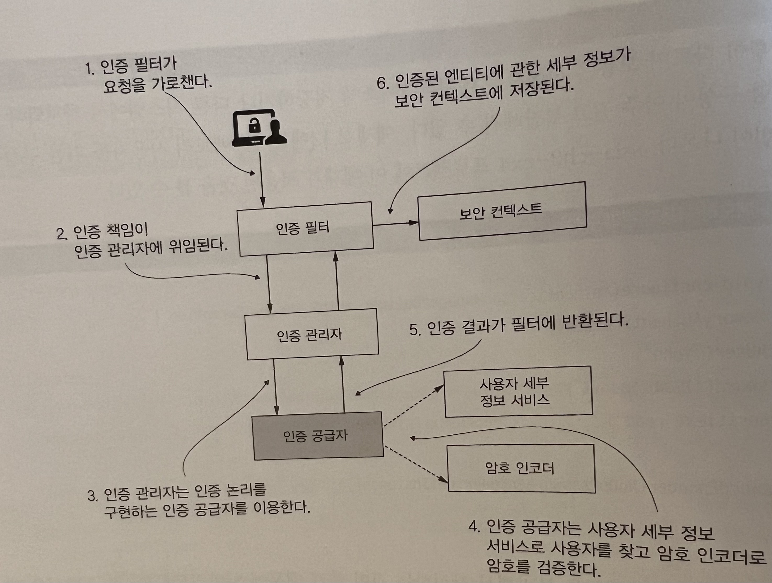 인증 필터는 인증요청을 인증 관리자에 위임하고 응답을 바탕으로 보안 컨텍스트를 구성한다.