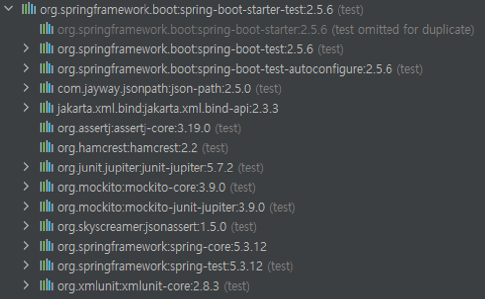 ''' 인텔리제이에서 pom.xml에 test 디펜던시를 추가한다.