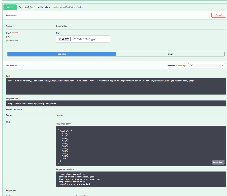 1번(Content-Type: application/json으로 이미지 URL 전송)은 간편하지만 보안상 취약할 수 있고, 2번(multipart/form-data로 파일 직접 전송)은 비교적 안전하고 테스트에 더 적합한 방식입니다. 즉, 저는 로컬에서 이미지 OCR API 테스트를 진행하고, 도면 부호만 뽑는 필터링을 진행할 것이기 때문에 2번 방법으로 하였습니다.
