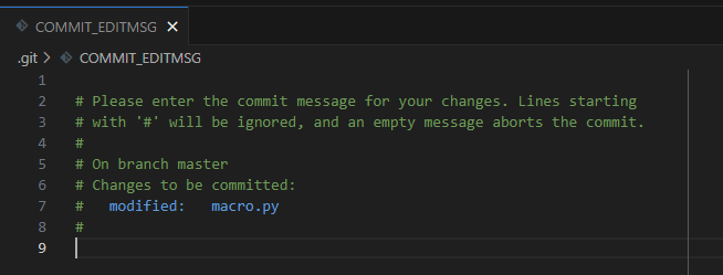 내용 작성 후 편집창을 닫으면 커밋 메세지가 저장된다. 취향에 따라 선택해서 사용하면 될 것 같다. vs code는 외부에서 에디터를 실행하기 때문에 4~5초 정도 걸리는 단점이 있다.