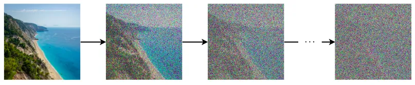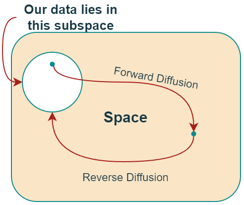 Diffusion came from the term used in Thermodynamics, where particle or molecules spontaneously move from high concentration to low concentration. Likening an image to a liquid, its pixels act like an atom. We repricate the physical diffusion process with noise. Adding noise to the image is like the diffusion process. By gradually adding noise at successive individual steps we are destorying the information. And we call this Forward Diffusion Process. The second part of the task is to restore the image by gradually denoising it. This denoising is called the Backward Diffusion Process.