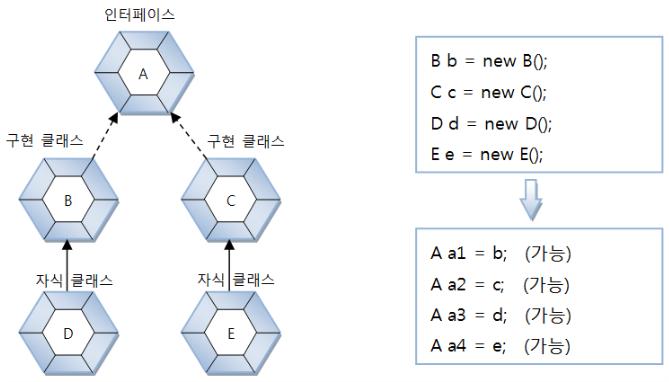 // 클래스가 인터페이스로 자동 타입 변환됨