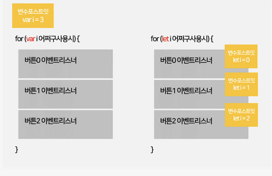 var i 들어있는 포스트잇은 for 바깥에 생성.