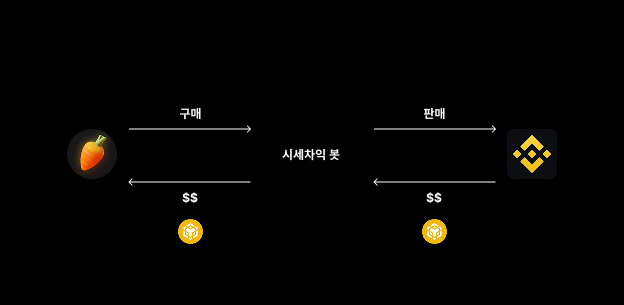 암호화폐 시세차익(Arbitrage)은 동일한 자산이 서로 다른 거래소에서 다른 가격에 거래되는 현상을 활용해 수익을 얻는 전략입니다. 예를 들어, 바이낸스에서 이더리움(ETH)이 3,000달러인데 유니스왑에서는 3,030달러에 거래되고 있다면, 바이낸스에서 ETH를 매수한 뒤 유니스왑에서 ETH를 매도하여 차익을 실현할 수 있습니다. 이처럼 거래소 간 가격의 일시적인 불균형을 자동화된 봇으로 포착하고 실행하는 것이 핵심입니다.