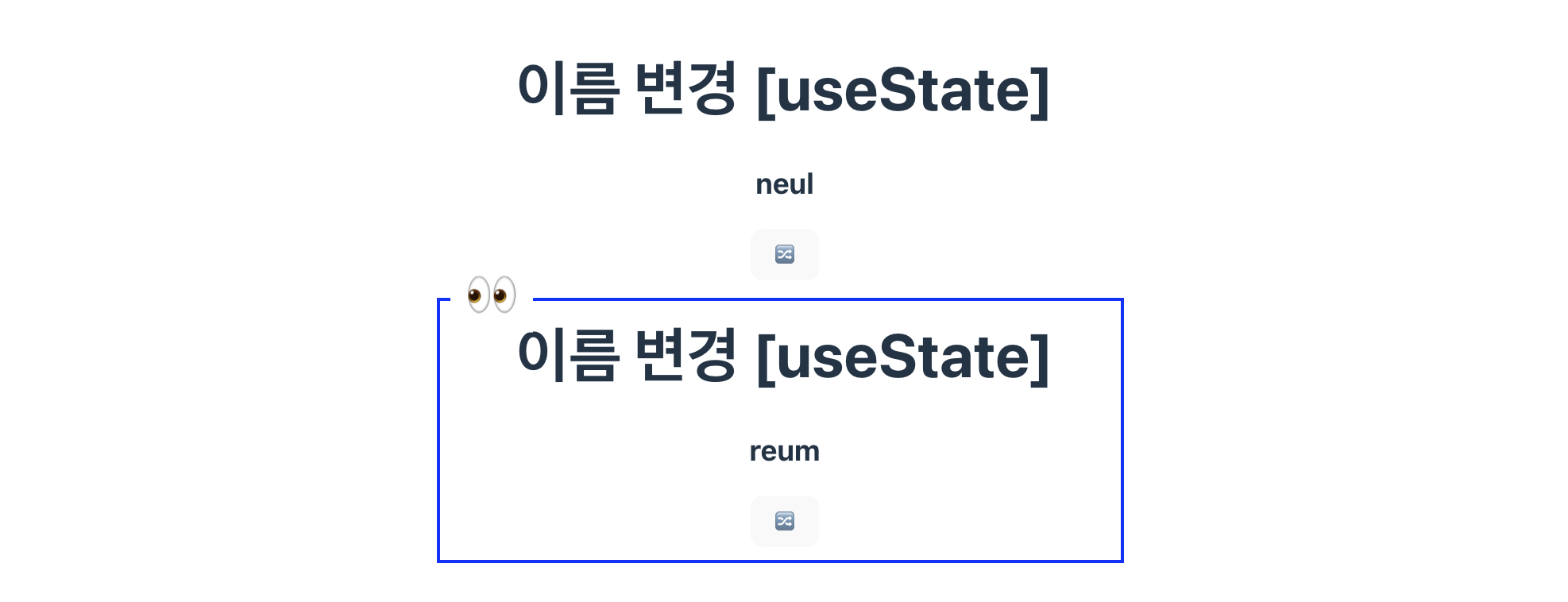 <button onClick={()=> setName(name === 'neul' ? 'reum' : 'neul')}>🔀</button>