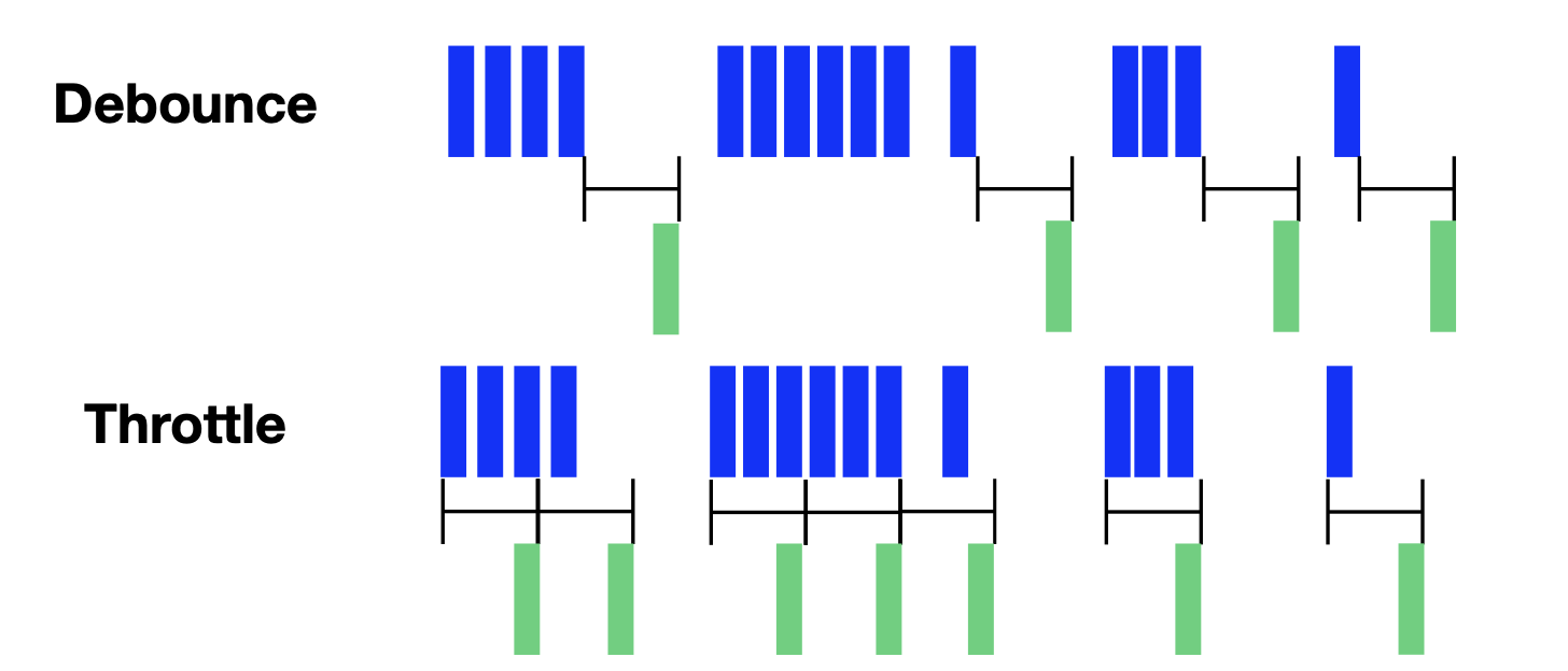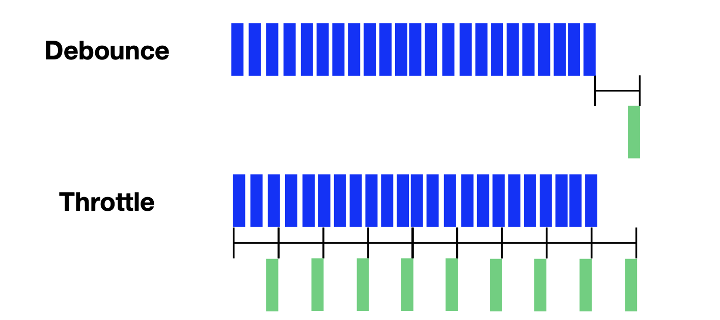 | 실행 조건 | 마지막 이벤트 발생 후 일정 시간 대기 | 이벤트 발생 후 일정 시간마다 실행 |