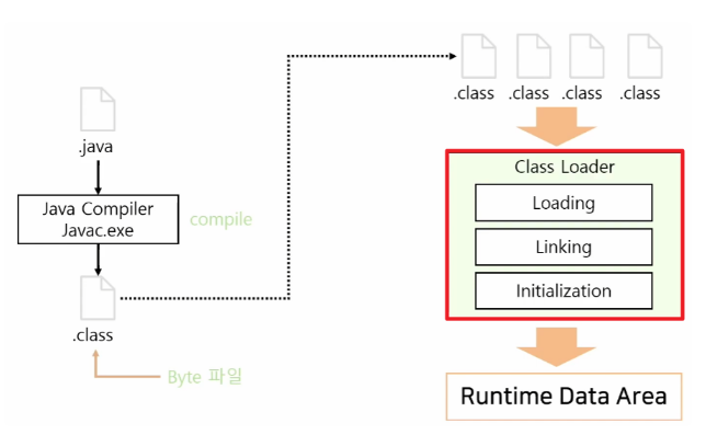 .java 원시코드를 컴파일러가 .class의 바이트 코드로 변환을 한다.