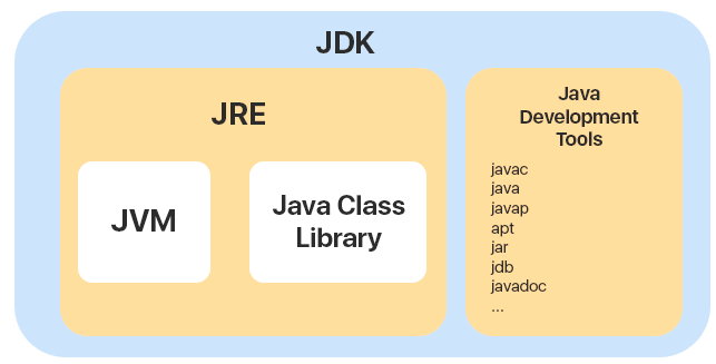 JDK : "JAVA 개발 키트" = "SDK(Software Development Kit) 키트" = "라이브러리 + javac + javadoc"