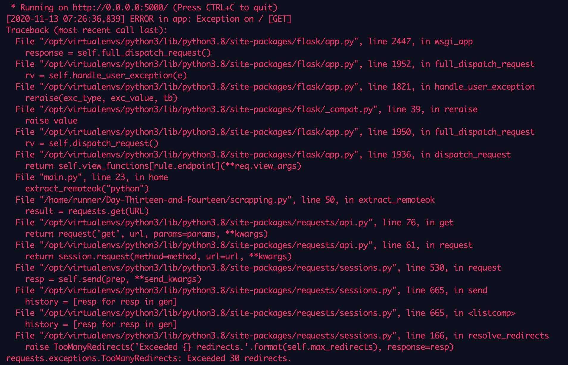 보니까 'redirection이 초과 되었다...' 이런 의미인 것 같았다.