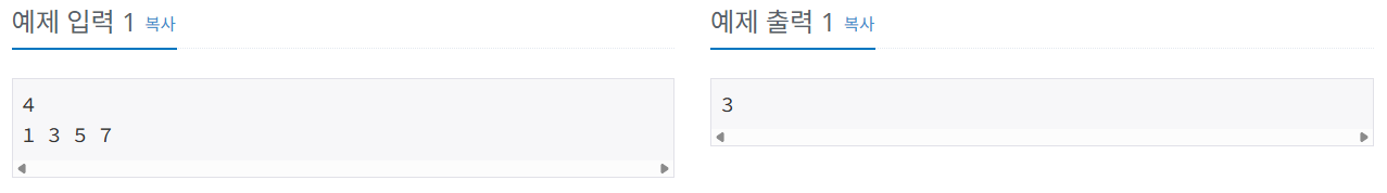 첫 줄에 수의 개수 N이 주어진다. N은 100이하이다. 다음으로 N개의 수가 주어지는데 수는 1,000 이하의 자연수이다.