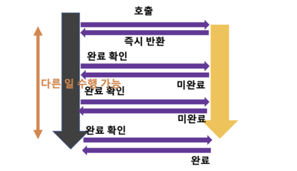 제어권을 넘겨주긴하지만 바로 돌려받는다. A작업이 끝나도 바로 제어권을 돌려받고 부모 함수는 B작업을 시작한다.
