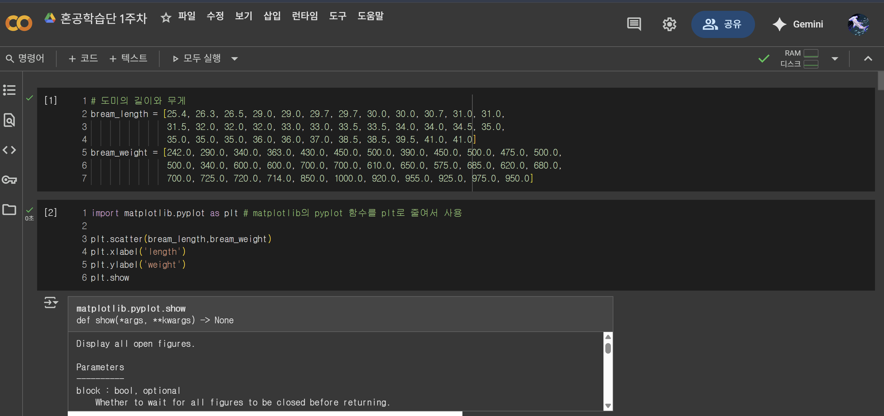 정리하면 코랩은 웹 브라우저 기반의 파이썬 코드 실행환경이다