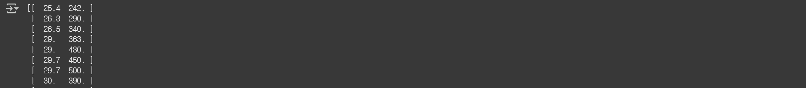 fish_data = [[l,w] for l,w in zip(length,weight)]