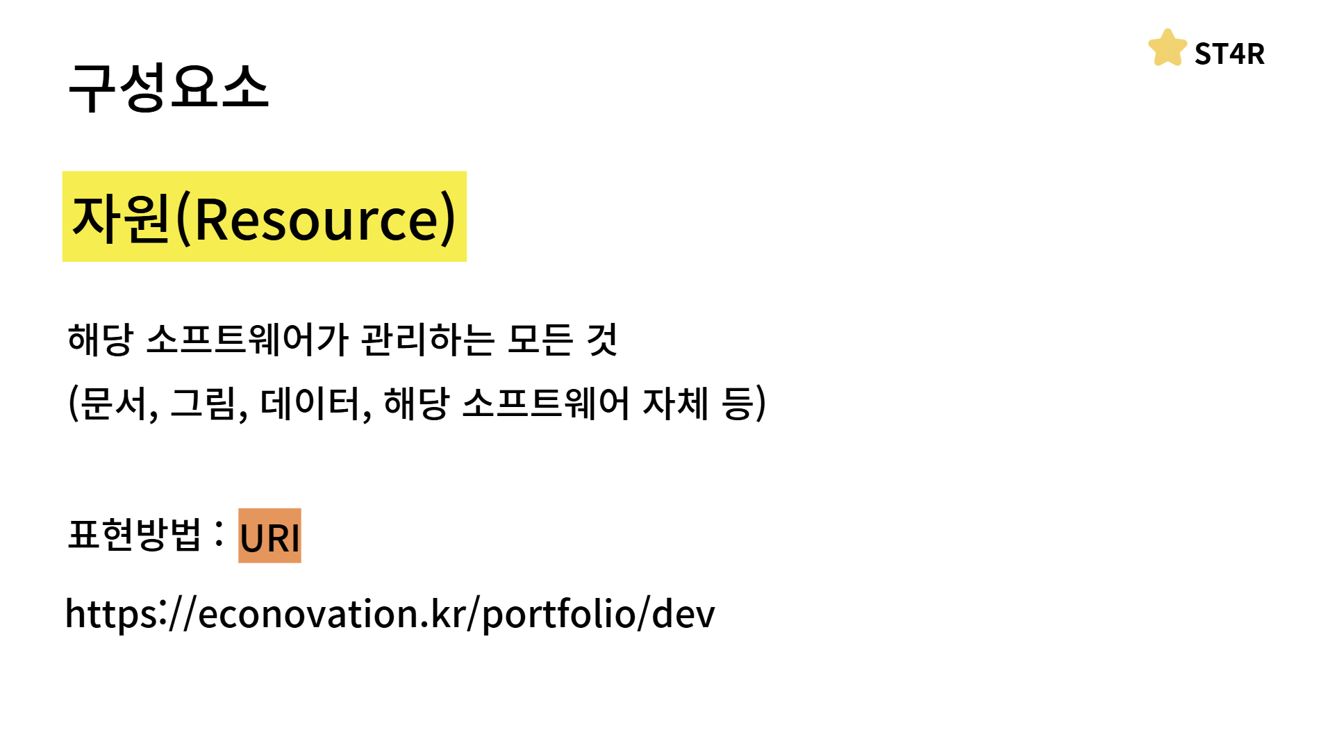 여기서 저희는 3가지 단어를 꼽을 수 있습니다 자원, 표현, 주고 받는 것 즉, 행위