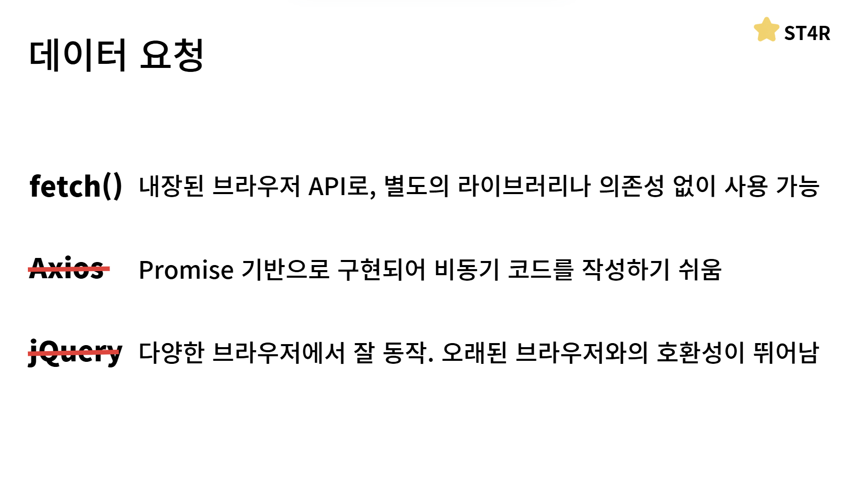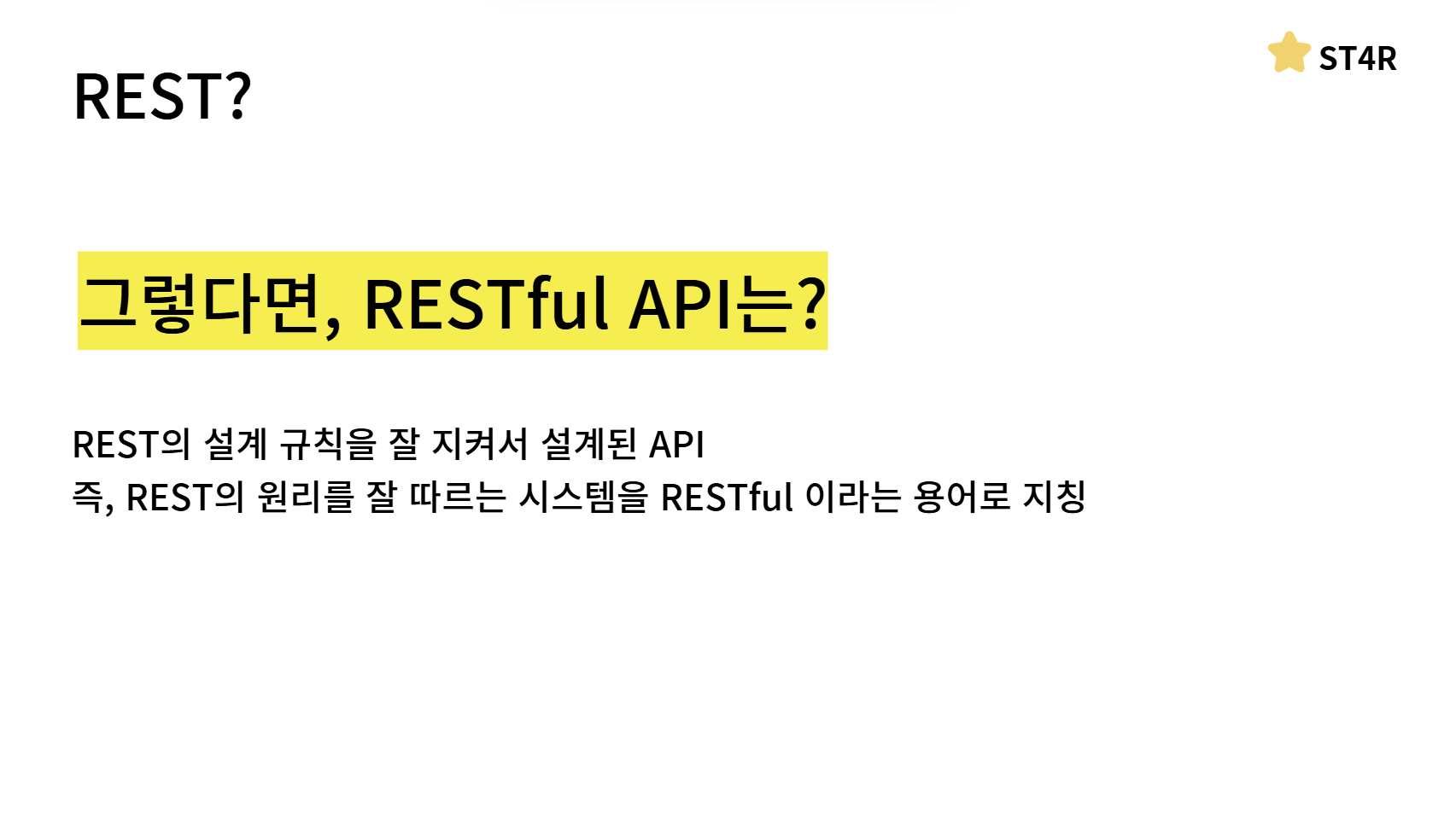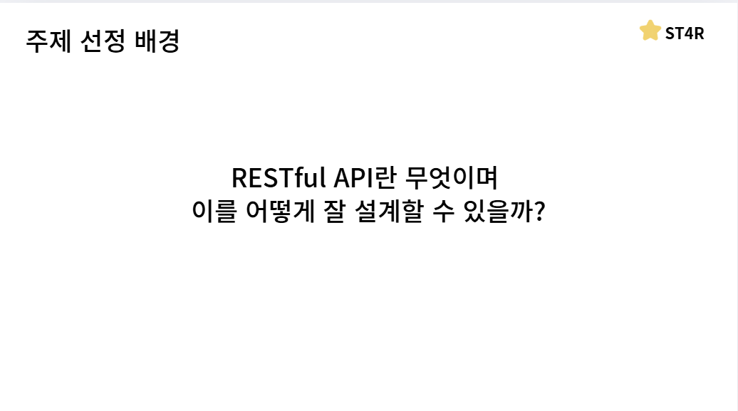 이상 RESTful API에 대해서 준비한 ST4R의 프론트엔드 개발자 안성준이였습니다