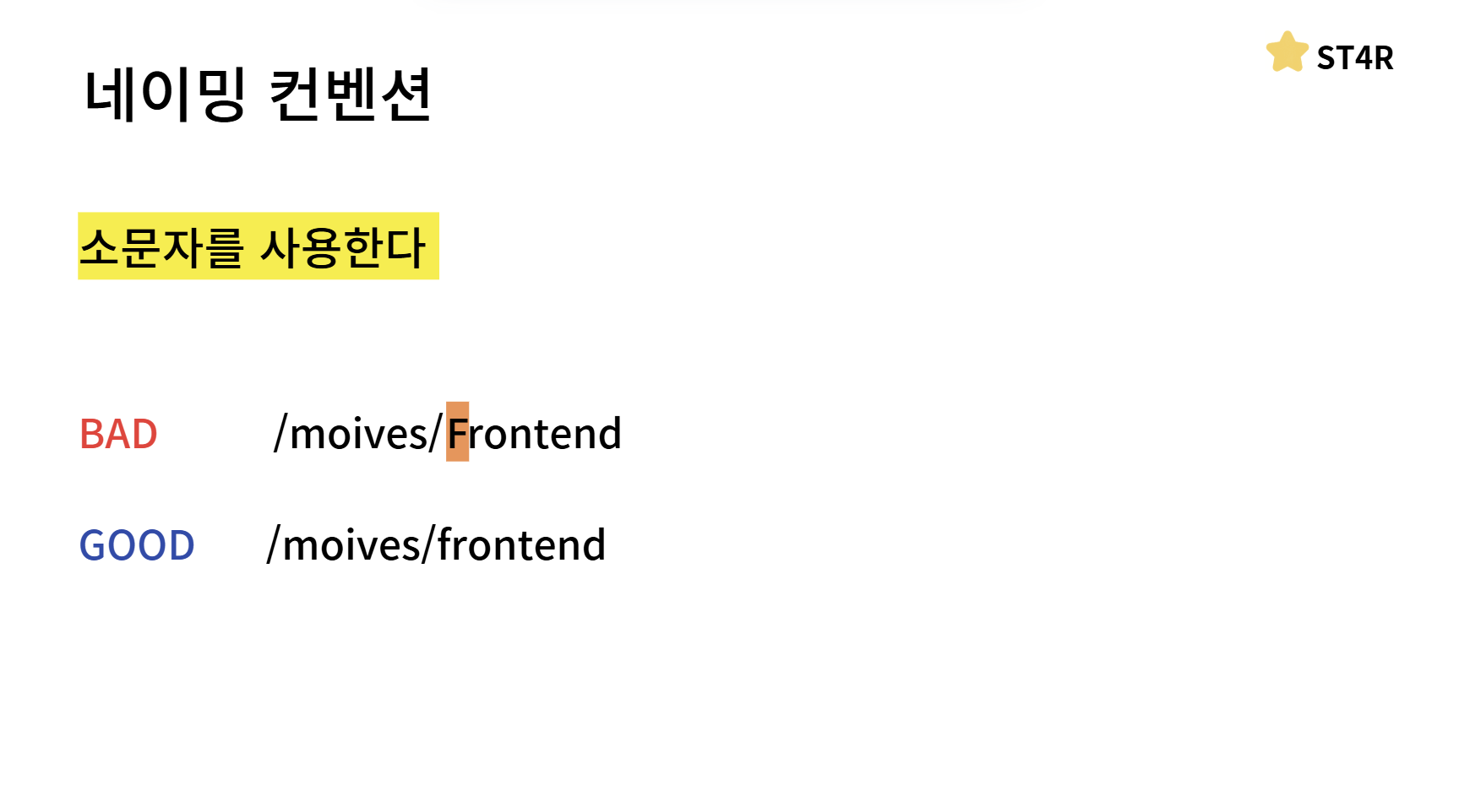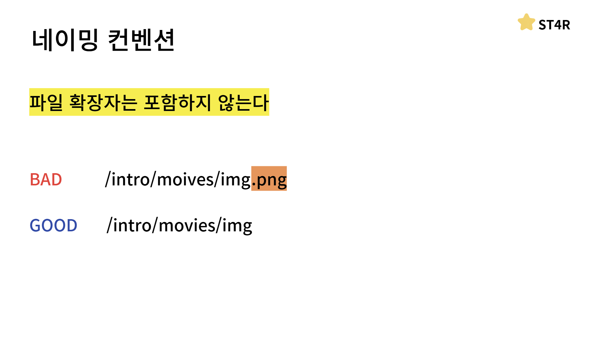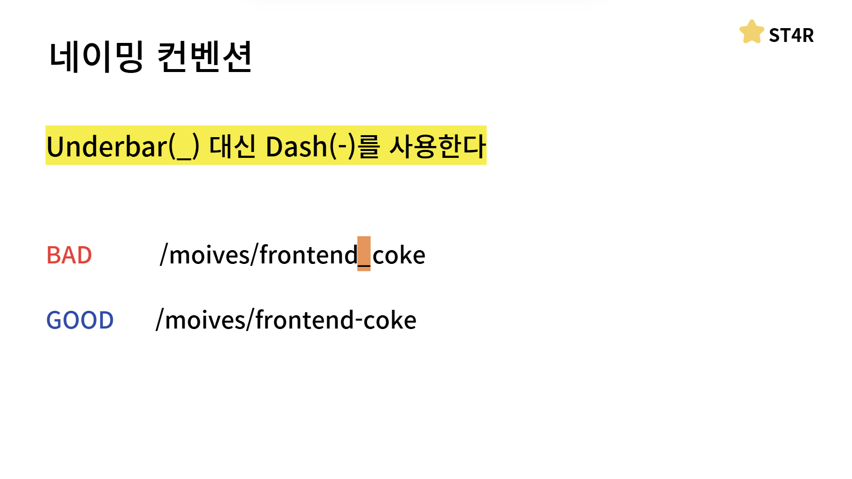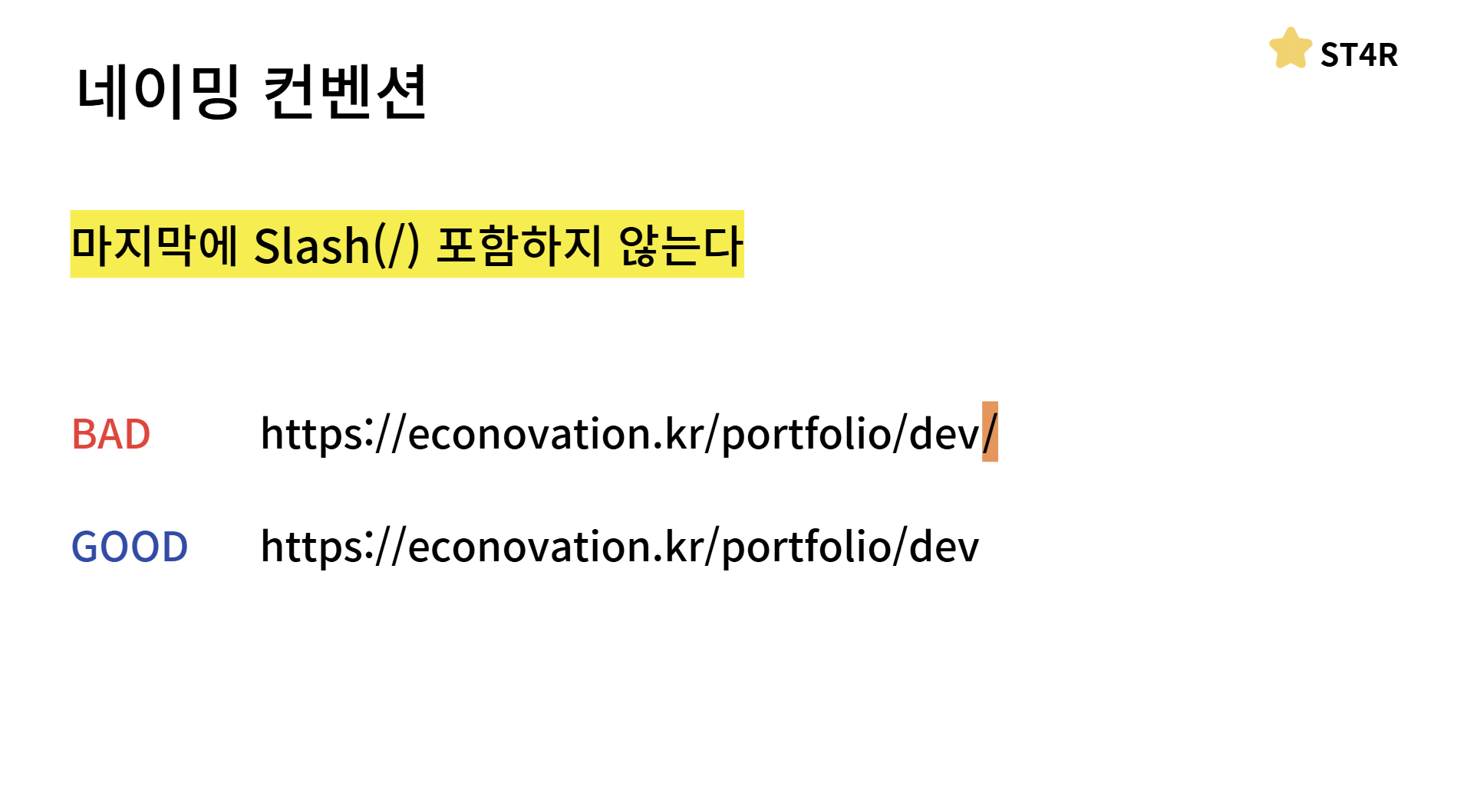 마지막 슬래시는 아무 의미가 없는 것이기 때문에 포함하지 않습니다이렇게 여러 네이밍 컨벤션에 대해서도 알아봤는데요