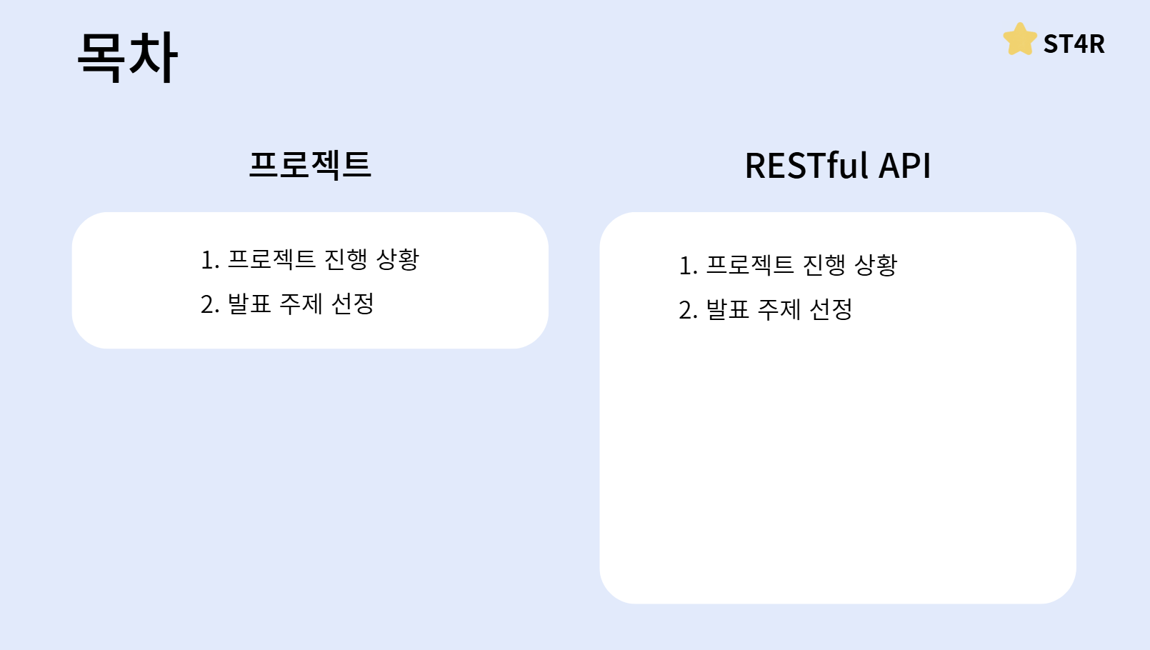 먼저 저희 ST4R의 프로젝트 진행 상황을 말씀드리겠습니다