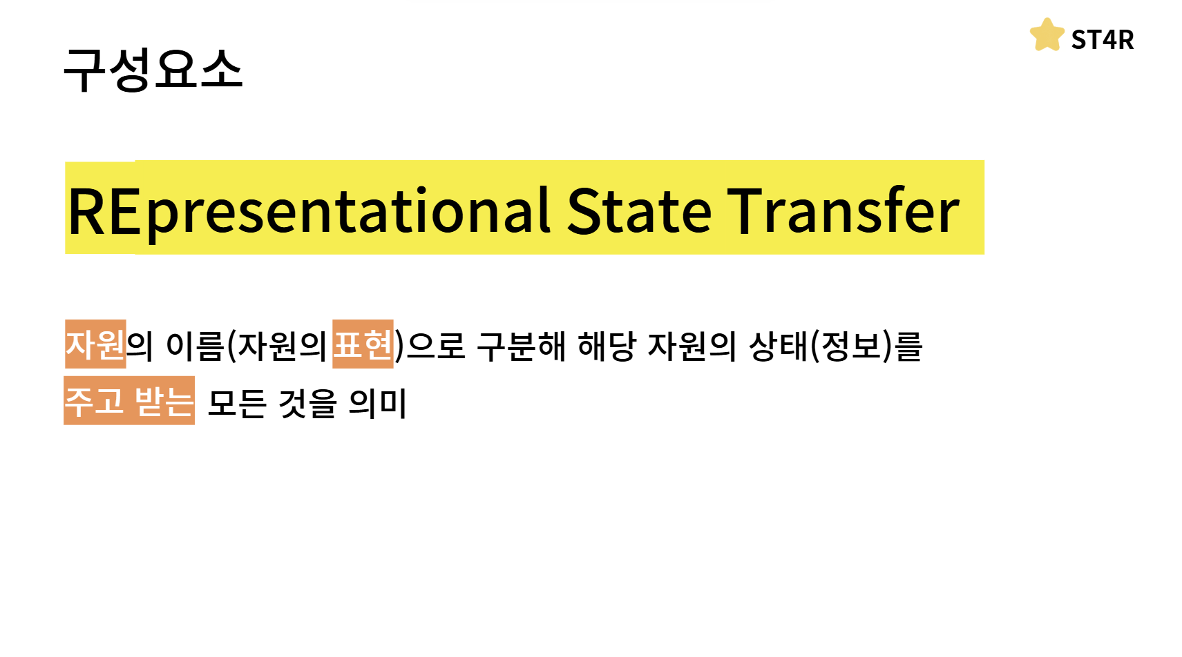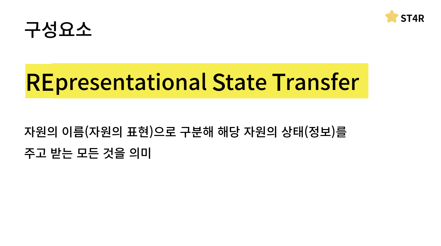 이 REST API의 구성요소는 REST의 의미를 통해서 알 수 있는데요