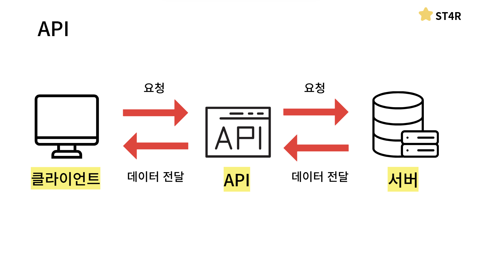 클라이언트가 API를 통해 서버에게 데이터를 요청하고