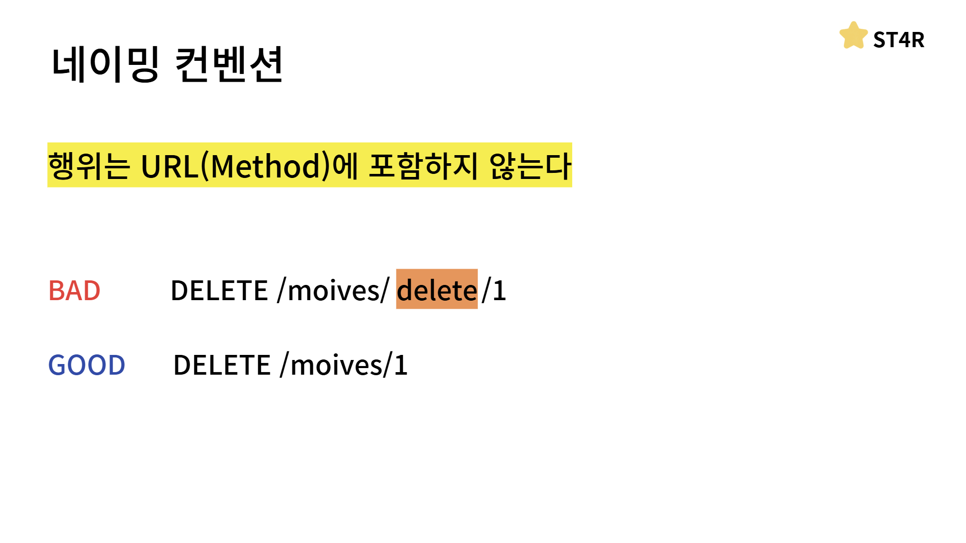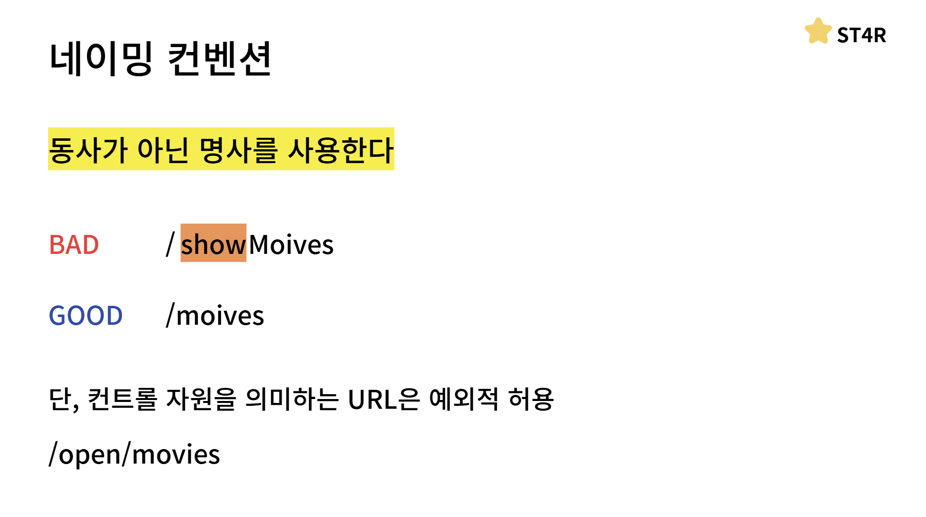 네이밍 컨벤션 첫 번째는 동사가 아닌 명사를 사용해야 합니다