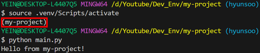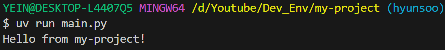파일만 수정하면, 기존 디렉토리를 그대로 유지한 채 가상환경의 Python 버전만 간편하게 변경할 수 있습니다.uv run main.py
