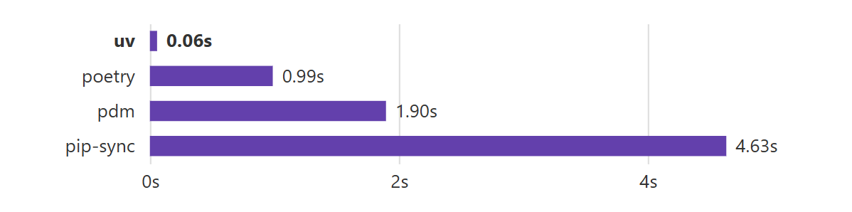 흔히 사용되는 pip이나 poetry 같은 다른 도구들에 비해 패키지 설치가 엄청나게 빠른 것이 특징입니다.