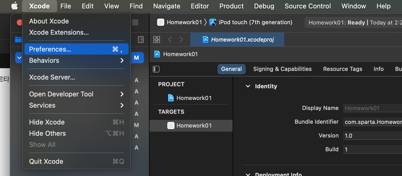 Xcode 상단 Xocde -> Preferences...