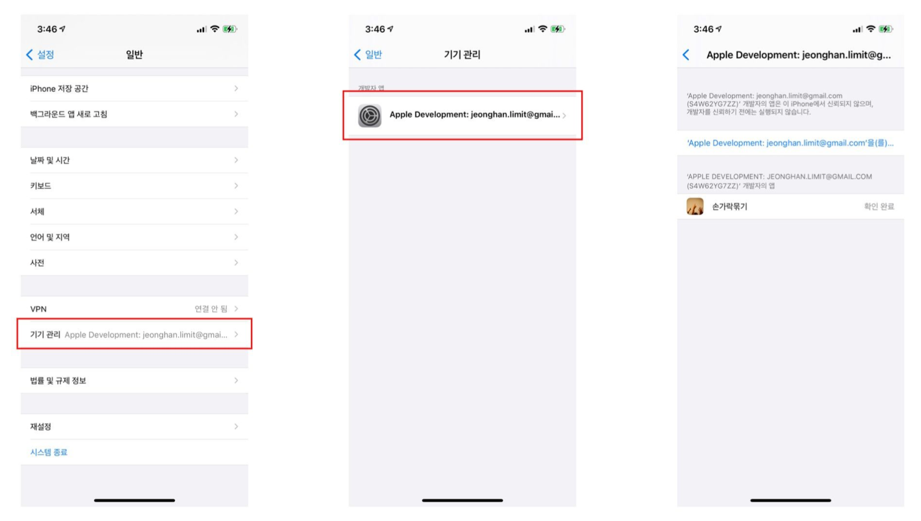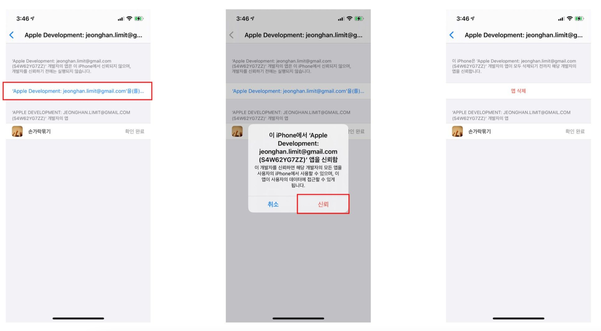 App Development: ... 선택 -> 신뢰