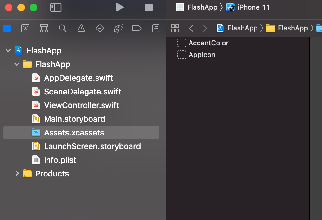 네비게이션 탭에서 Assets.xcassets 선택