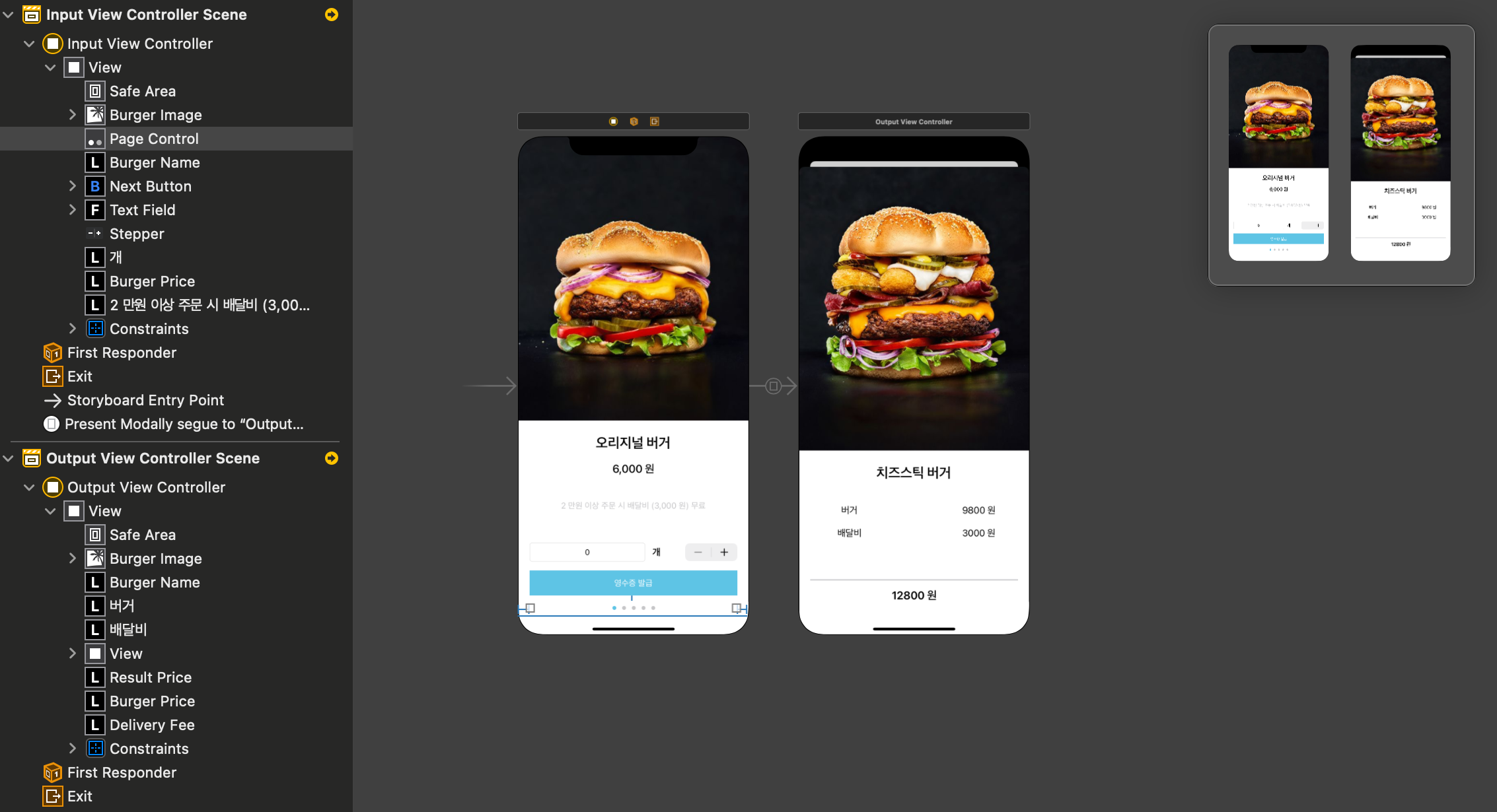 간단하게 만들어서 scroll view를 사용하지 않아 화면을 슬라이드하여 넘어가는 것이 아니라 page control을 눌러야 다음 화면으로 넘어가 조금 아쉬웠다.