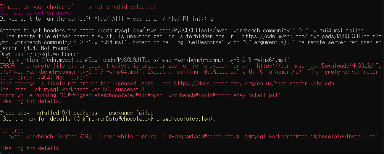 대충 찾아보니 chocolatey 문제라는 것 같아서 그냥 직접 다운받기로 함