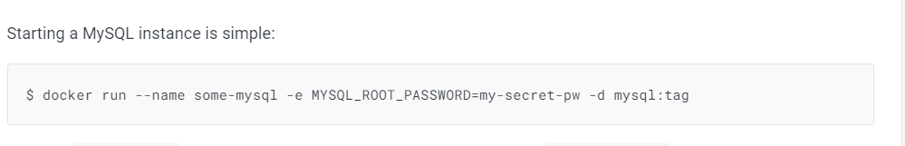 docker run --name docker-mysql -e MYSQL_ROOT_PASSWORD="password" -d mysql:8.0