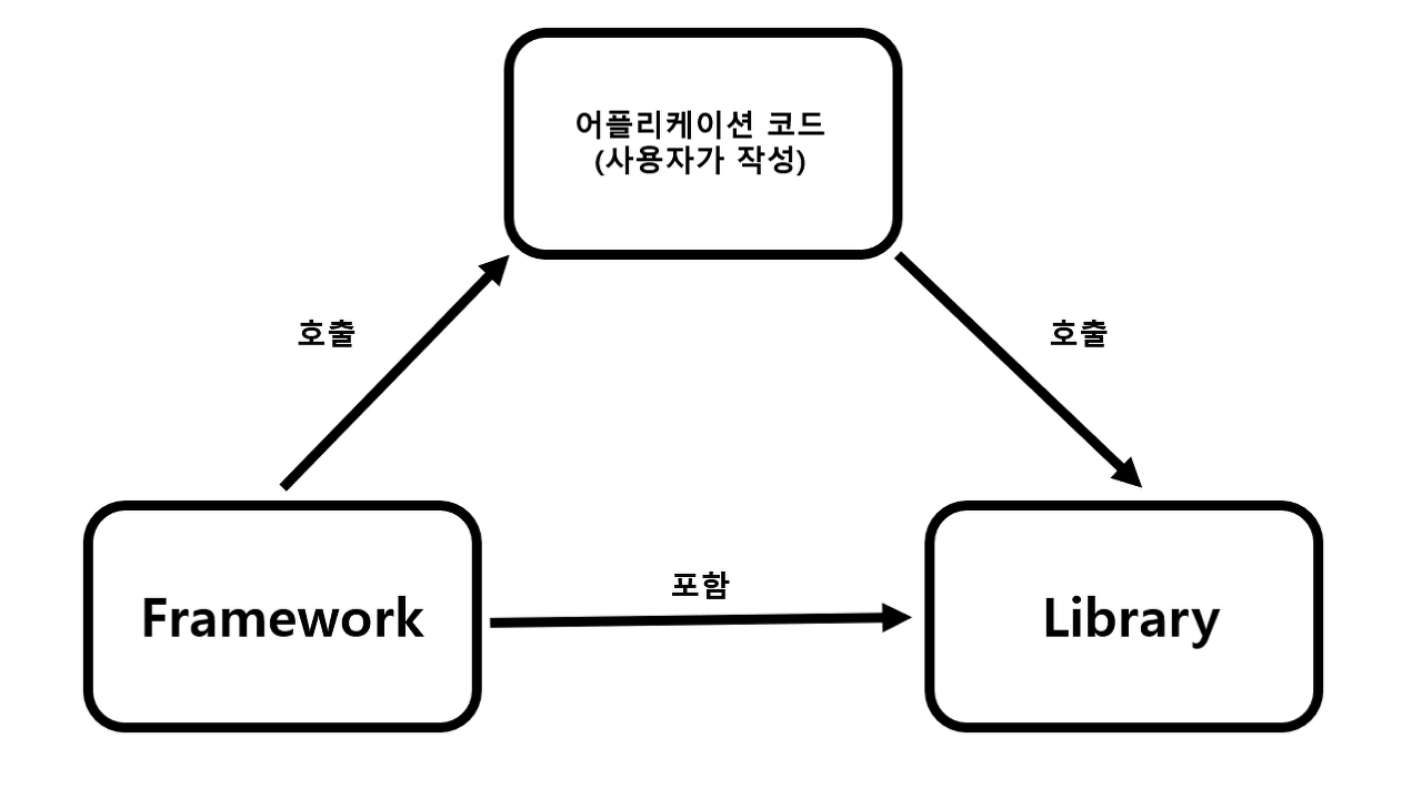 프레임워크와 라이브러리의 차이점은 "제어 흐름"의 권한이 어디에 있는가입니다.